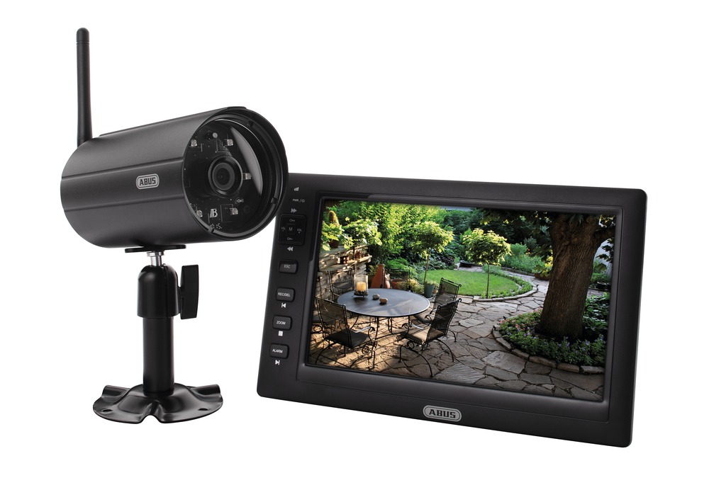 This complete package includes everything you need for quickly creating a wireless video surveillance system in a private area or for small buildings (1 to a maximum of 4 cameras). The set includes a 7“ radio colour monitor, an IR radio outdoor camera, 2.4 GHz with integrated motion detection and other accessories. Video images and sound are transmitted wirelessly by the camera to the monitor where they can be displayed – at distances of up to 150 m (free field).